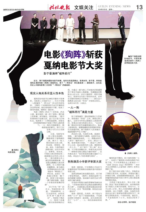 近日,第77届戛纳国际电影节闭幕,各单元的奖项颁出。管虎执导,彭于晏、佟丽娅领衔主演的电影《狗阵》脱颖而出,拿下“一种关注”单元最高奖——最佳影片。这也是历史上中国电影第二次拿到“一种关注”的最高奖。