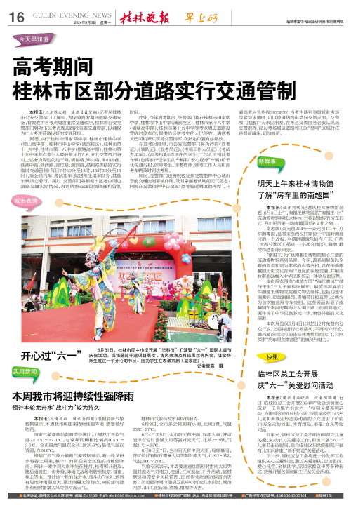 本报讯(记者苏文娟 通讯员聂梦娴)记者从桂林市公安交警部门了解到,为保障高考期间道路交通安全,有效维护各考点周边道路交通秩序,桂林市公安交警部门将对市区考点周边路段实施交通管制,以确保为广大考生营造良好的交通环境。