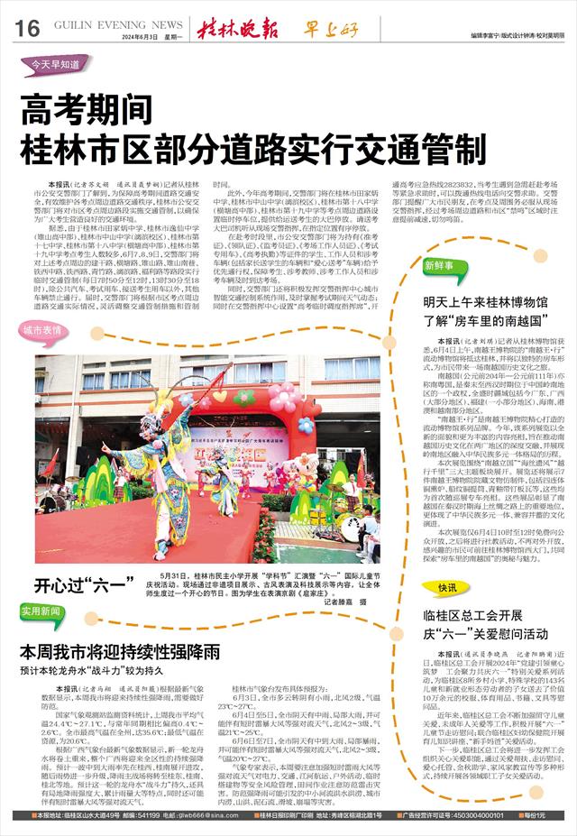 庆“六一”关爱慰问活动   本报讯(通讯员李晓燕 记者阳聃甫)近日,临桂区总工会开展2024年“党建引领童心筑梦 工会聚力共庆六一”特别关爱系列活动,为临桂区8所乡村小学、特殊学校的143名儿童和新就业形态劳动者的子女送去了价值10万余元的校服、体育用品、书籍、文具等慰问品。