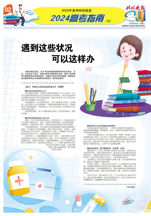可以这样办   高考的脚步渐近,每个考生都希望能顺顺利利完成考试。为此,记者采访了医生、民警及经验丰富的带队老师,梳理了高考期间可能遇到的各类突发情况,并提出针对性的应对策略,希望这些建议能帮助考生从容地面对突发情况,顺利完成高考。