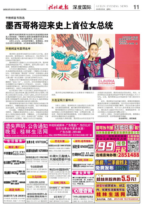 墨西哥总统洛佩斯通过社交媒体对辛鲍姆表示祝贺。