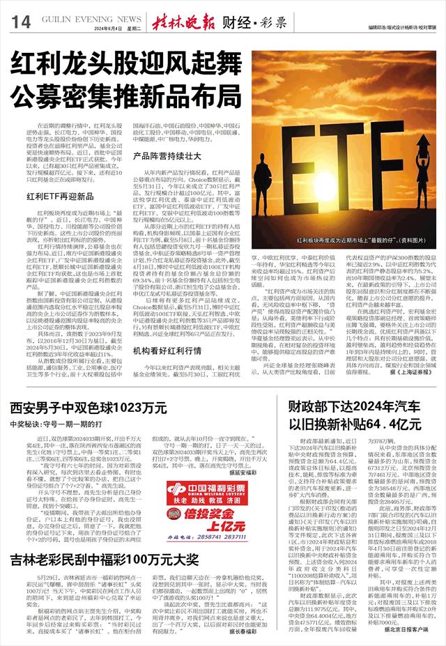 公募密集推新品布局   在近期的调整行情中,红利龙头股逆势走强,长江电力、中国神华、国投电力等龙头股股价纷纷创下历史新高。投资者也在追捧红利型产品,基金公司更是快速顺势布局。近日,首批中证国新港股通央企红利ETF正式获批。今年以来,已有超30只红利产品密集成立,发行规模超百亿元。接下来,还有近10只红利基金正在或即将发行。