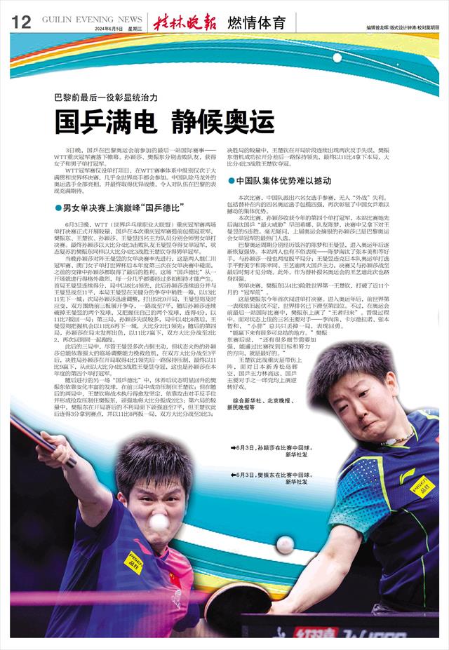 这是樊振东今年首次闯进单打决赛。进入奥运年后,前世界第一表现依旧起伏不定,世界排名已下滑至第四位。不过,在奥运会前最后一站国际比赛中,樊振东上演了“王者归来”。晋级过程中,面对状态上佳的三名主要对手——李尚洙、卡尔德拉诺、张本智和,“小胖”总共只丢掉一局,表现回勇。“能赢下来有很多可总结的地方。”樊振东赛后说,“还有很多细节需要加强,能通过比赛找到目标和努力的方向,就是最好的。”