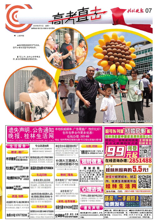本报讯(记者唐霁云)6月9日,为期3天的2024年高考结束,今年是广西高考综合改革首考落地之年,桂林共3.5万余名考生赴考。在市委、市政府的领导下,桂林市教育行政部门、招生考试机构会同宣传、网信、公安、保密、工信、卫健、交通运输、市场监管、应急、通信、气象等部门通力协作,多措并举,从严从实做好高考各项组考保障工作,圆满实现了“平安高考”“健康高考”“温馨高考”目标。