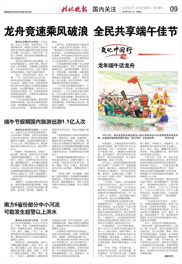 端午假期出游热情   端午假期,桂林虽然迎来“龙舟水”,却阻挡不了广大市民和游客出行的热情。三天时间,我市各大景区景点推出了丰富多彩的端午民俗活动,带动假期文旅市场的消费热潮。在颇为吸引眼球的赛龙舟活动中,多地的热闹场面更是将端午节气氛直接拉满。