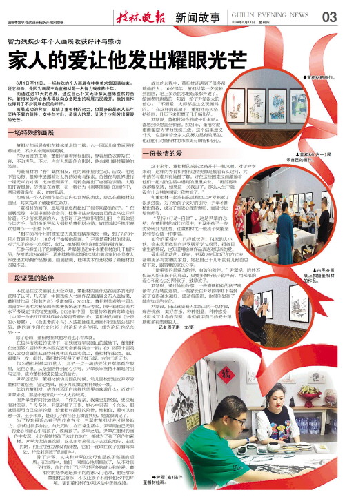 智力残疾少年个人画展收获好评与感动 家人的爱让他发出耀眼光芒   6月1日至11日,一场特殊的个人画展在桂林美术馆圆满结束。说它特殊,是因为画展主角董相材是一名智力残疾的少年。