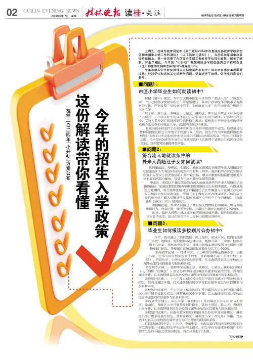 桂林2024年“小升初”方案公布 这份解读带你看懂