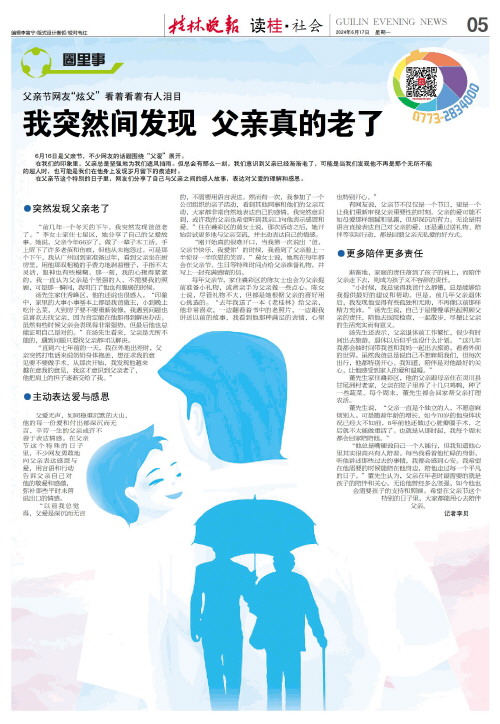 “以前我总觉得,父爱是深沉而无言的,不需要用语言表达。然而有一次,我参加了一个公司组织的亲子活动,看到其他同事和他们的父亲互动,大家都非常自然地表达自己的感情。我突然意识到,或许我的父亲也希望听到我亲口向他表示感恩和爱。”住在叠彩区的莫女士说,那次活动之后,她开始尝试更多地与父亲交流,并主动表达自己的情感。