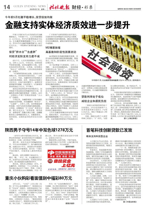 前5个月,人民币贷款增加11.14万亿元。分析人士认为,今年以来,信贷投放节奏更加均衡,信贷总量增长合理,支持实体经济仍有后劲。尤其是,信贷增长“挤水分”效果显现,支持实体经济质效进一步提升。