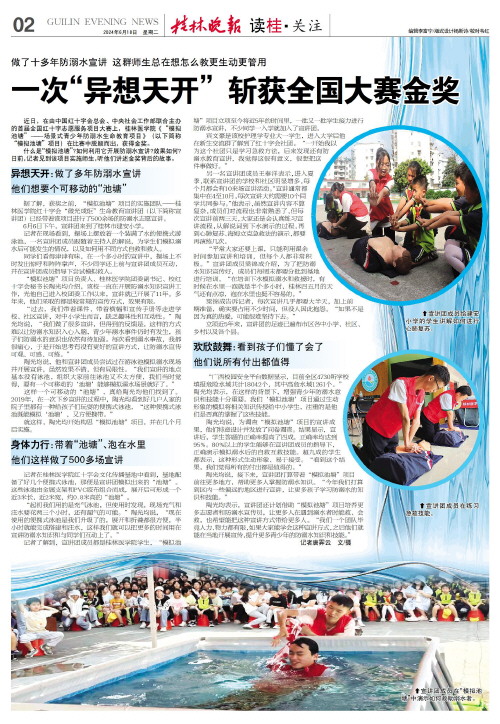 做了十多年防溺水宣讲 这群师生总在想怎么教更生动更管用 一次“异想天开” 斩获全国大赛金奖   近日,在由中国红十字会总会、中央社会工作部联合主办的首届全国红十字志愿服务项目大赛上,桂林医学院《“模拟池塘”——场景式青少年防溺水生命教育项目》(以下简称“模拟池塘”项目)在比赛中脱颖而出,获得金奖。