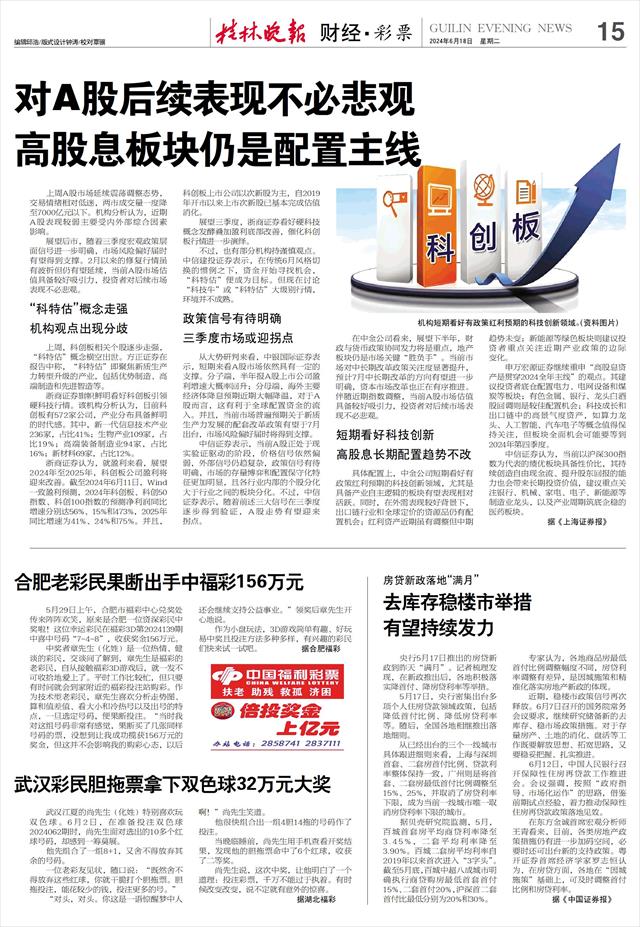 申万宏源证券继续重申“高股息资产是贯穿2024全年主线”的观点。其建议投资者底仓配置电力、电网设备和煤炭等板块;有色金属、银行、龙头白酒股回调则是较佳配置机会;科技成长和出口链中的高景气度资产,如算力龙头、人工智能、汽车电子等概念值得保持关注,但板块全面机会可能要等到2024年第四季度。