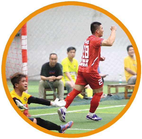 进球后,球员挥拳庆祝。