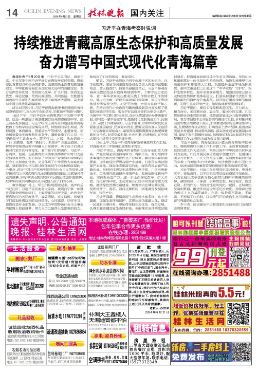 奋力谱写中国式现代化青海篇章   新华社西宁6月20日电 中共中央总书记、国家主席、中央军委主席习近平近日在青海考察时强调,青海要认真贯彻党中央决策部署,完整准确全面贯彻新发展理念,牢牢把握青海在全国发展大局中的战略定位,充分发挥自身优势,坚持深化改革、扩大开放,坚持生态优先、绿色发展,坚持民族团结、共同富裕,在推进青藏高原生态保护和高质量发展上取得更大进展,奋力谱写中国式现代化青海篇章。