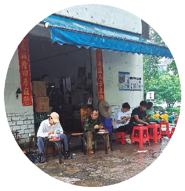 “在门口吃更有味道。”一名顾客跟记者调侃道,虽然小店的用餐环境有些简陋,但这家店是街坊邻里吃了很多年的老店,不仅味道好,嗦粉的时候还能遇到邻居熟人,几个老友坐在一起聊天,别有一番风味。“有句话说得好,自家楼下的米粉最好吃,这可能是因为有人情味加分吧。”