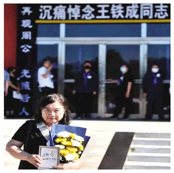 早上九点不到,八宝山殡仪馆东礼堂门前已经排起长长的队伍,前来送别王铁成的人群中,有他的生前亲友、同行后辈,也有许多自发赶来的影迷观众。礼堂门口挂着“沉痛悼念王铁成同志”的挽联:“演技绝伦,情出于心;再现周公,光照后人。”礼堂内的大屏幕上,滚动播放王铁成生前的剧照和生活照。