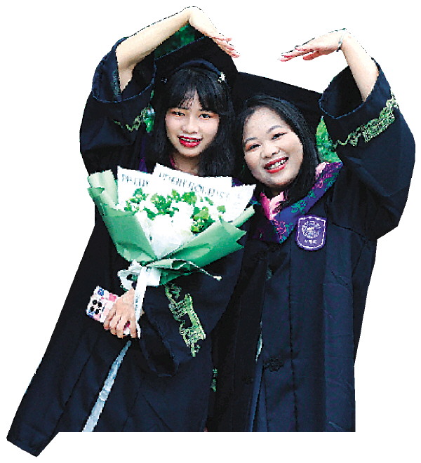 桂林理工大学毕业生穿着学位服拍照留念。(桂林理工大学供图)