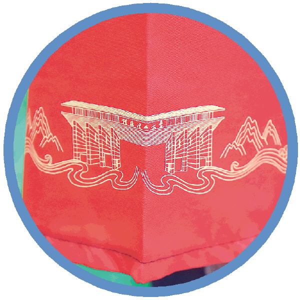 据他介绍,学位袍融入了精巧细致的桂工元素及桂林元素。学位袍左胸前是纪念徽章,上面绣着校训“厚德笃学,惟实励新”以及毕业生的姓名,这样的设计让每一件学位袍都是唯一的。