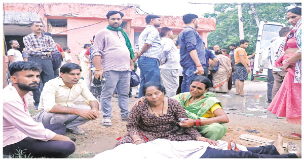 7月2日,在印度北方邦哈特勒斯地区,遇难者亲属在遇难者遗体旁哭泣。