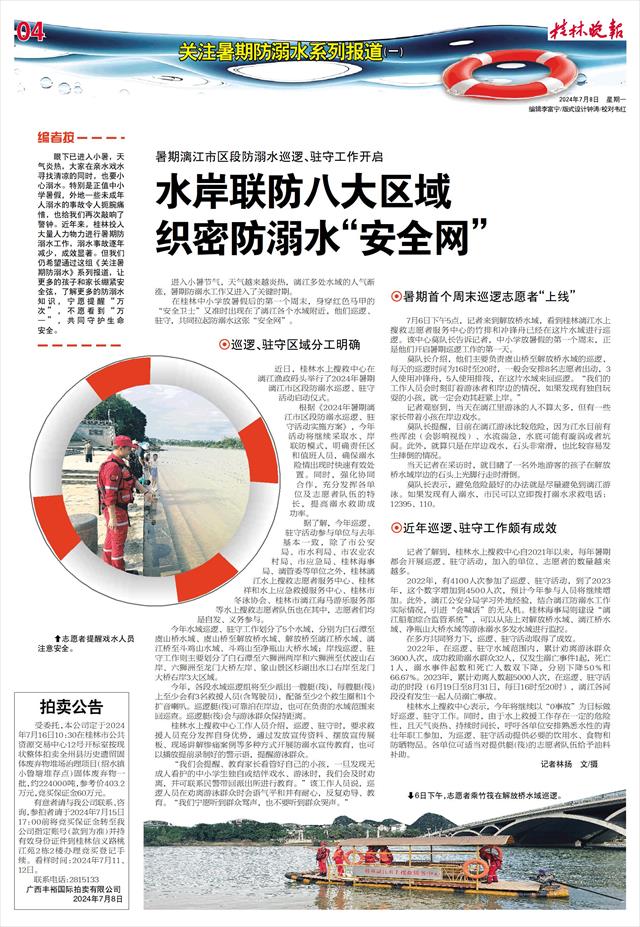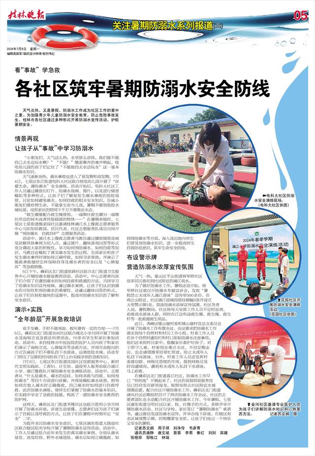 眼下已进入小暑,天气炎热,大家在亲水戏水寻找清凉的同时,也要小心溺水。特别是正值中小学暑假,外地一些未成年人溺水的事故令人扼腕痛惜,也给我们再次敲响了警钟。近年来,桂林投入大量人力物力进行暑期防溺水工作,溺水事故逐年减少,成效显著。但我们仍希望通过这组《关注暑期防溺水》系列报道,让更多的孩子和家长绷紧安全弦,了解更多的防溺水知识,宁愿提醒“万次”,不愿看到“万一”,共同守护生命安全。
