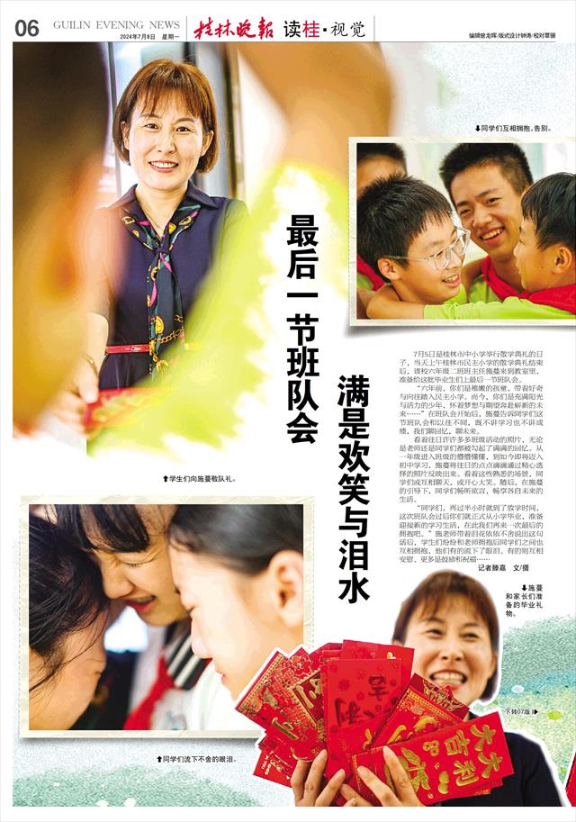 7月5日是桂林市中小学举行散学典礼的日子,当天上午桂林市民主小学的散学典礼结束后,该校六年级二班班主任施蔓来到教室里,准备给这批毕业生们上最后一节班队会。