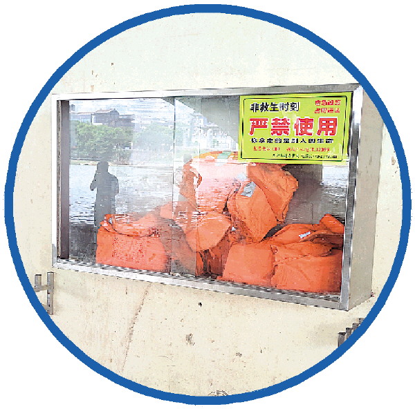 该河段的救生设施放在沿岸各个能进出河岸的路口,包括救生衣、救援绳和竹竿等。
