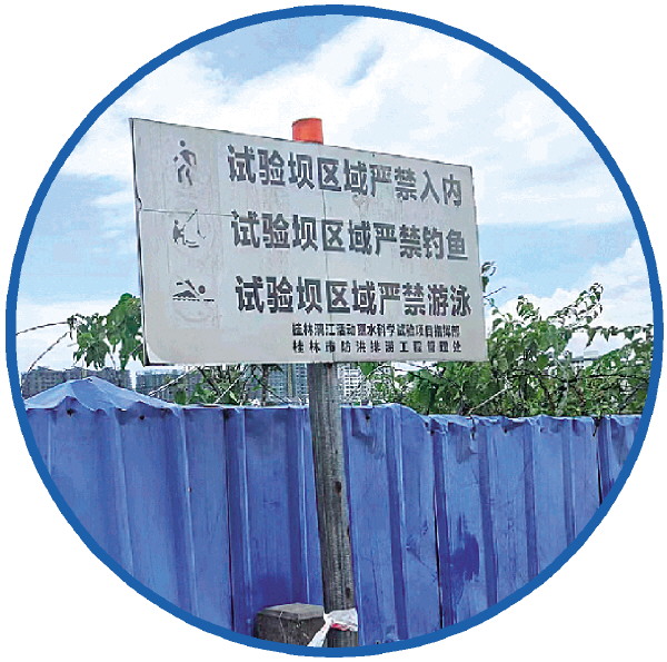 试验坝区域的河岸几乎被护栏、铁皮完全封闭。