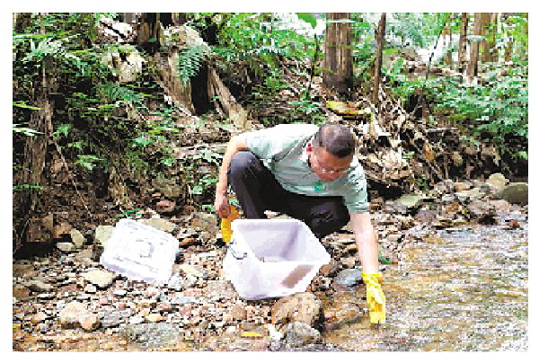 当天,在大桂山保护区的一处林木茂密的溪流旁,50只鳄蜥被放到溪水中。对于野外环境,人工繁殖的鳄蜥显得比较陌生,有的顺着水流游走,有的钻进石头缝里,有的将头探出水面怯怯地环顾四周。