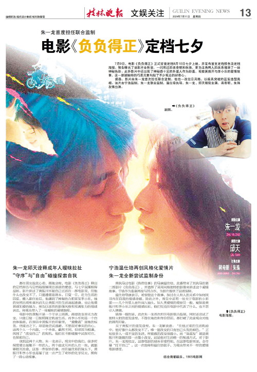 朱一龙首度担任联合监制 电影《负负得正》定档七夕   7月9日,电影《负负得正》正式官宣定档8月10日七夕上映,并发布首支定档预告及定档海报。预告曝光了该影片全阵容,一闪而过的蒋奇明和朱珠,更为主角两人的关系增添了一丝神秘色彩。此外影片中还出现了神秘感十足的外星人作为彩蛋,观察黄振开与李小乐的爱情故事,这一新颖独特的巧思元素勾起了不少观众的好奇心。