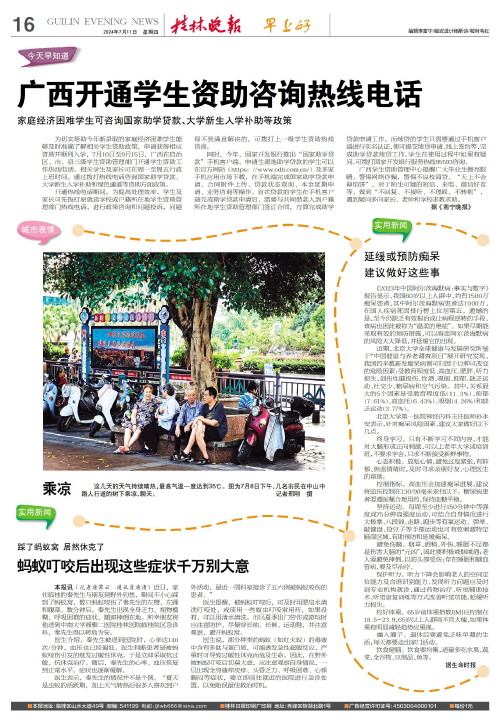 广西开通学生资助咨询热线电话 家庭经济困难学生可咨询国家助学贷款、大学新生入学补助等政策   为切实帮助今年新录取的家庭经济困难学生能够及时准确了解相关学生资助政策,申请获得相应资助并顺利入学,7月10日至9月15日,广西在自治区、市、县三级学生资助管理部门开通学生资助工作热线电话。相关学生及家长可在周一至周五行政上班时间,通过拨打热线电话咨询国家助学贷款、大学新生入学补助和绿色通道等资助方面政策。