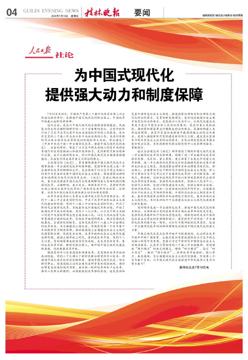 第三次全体会议公报 (2024年7月18日中国共产党第二十届中央委员会第三次全体会议通过) 上接02版