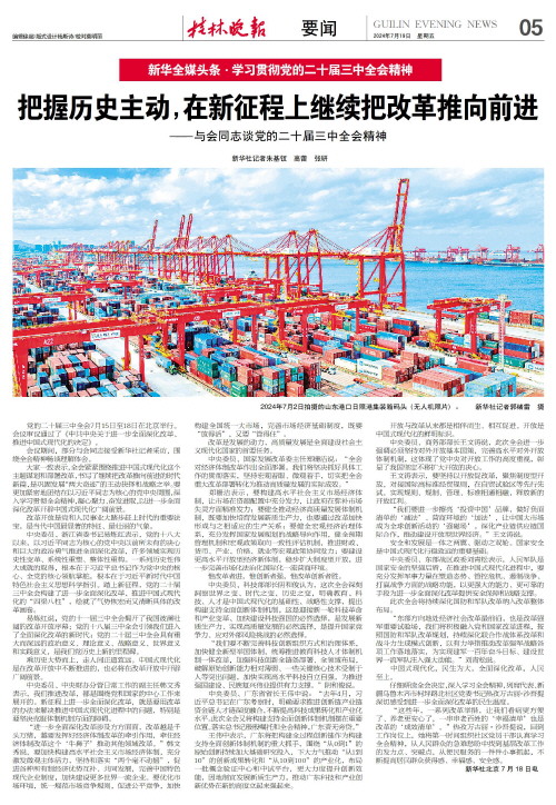 把握历史主动,在新征程上继续把改革推向前进 ——与会同志谈党的二十届三中全会精神 新华社记者朱基钗 高蕾 张研