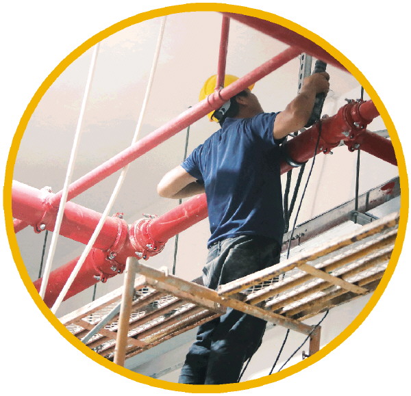 一名工人进行管网安装。