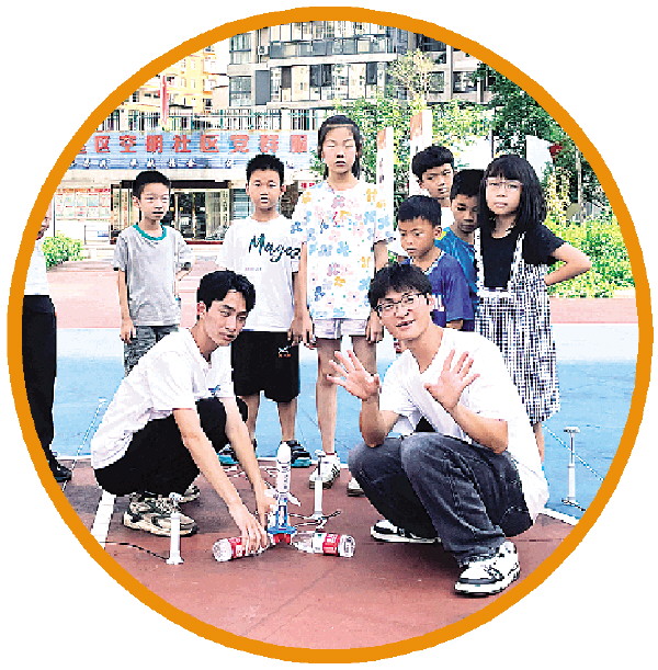 15日下午,桂林航天工业学院学生志愿者带着飞机模型、航模道具等为孩子们讲述航天知识科普课。课程伊始,大学生志愿者以交流互动的方式带领孩子们了解中国航天事业的发展历程,介绍中国航天的事迹和成就,为他们开启航空航天领域的启蒙大门。课程中,志愿者带领孩子们到党建主题文化广场亲自体验水火箭发射过程,进一步加深了他们对航天知识的理解和掌握。