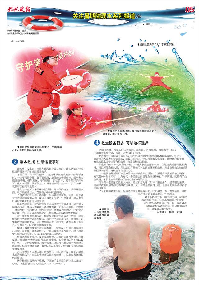 “一定要选择正规厂家生产的符合标准的救生设备。如果是充气类型的救生设备,充气至95%左右即可,以免充气太多后遇上高温导致设备胀破。”羊简说,就算有了救生设备,家长也应当盯着孩子游泳,随时确保安全。