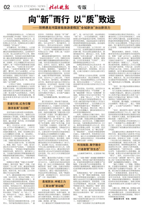 向“新”而行 以“质”致远 ——阳朔遇龙河国家级旅游度假区“全域新治”治出新活力   每每提起桂林的山水,人们就会自然而然地随口吟诵起“桂林山水甲天下”的名句。如诗如画的桂林山水,是人们向往的旅游胜地;而桂林山水又以阳朔山水为代表,阳朔因此成为无数中外游客的“诗与远方”。
