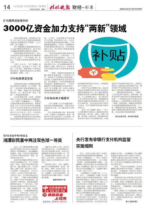 扩内需再迎政策利好 3000亿资金加力支持“两新”领域   国家发展改革委、财政部近日发布《关于加力支持大规模设备更新和消费品以旧换新的若干措施》(以下简称《若干措施》)。