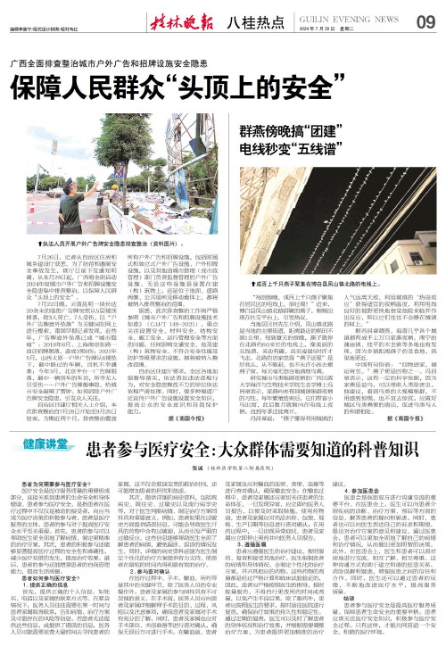 城市户外广告和招牌设施安全隐患 保障人民群众“头顶上的安全” ●详见 9 版