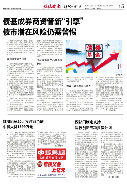 债市潜在风险仍需警惕   债券市场的火热传递到了券商资管。截至目前,券商资管年内新发基金产品中,超八成为债券型基金。业内人士认为,债券型基金更能满足投资者财富保值增值的需求,而券商资管在投研能力、产品创新方面的优势将助力其在发展债券型基金上占据一席之地。