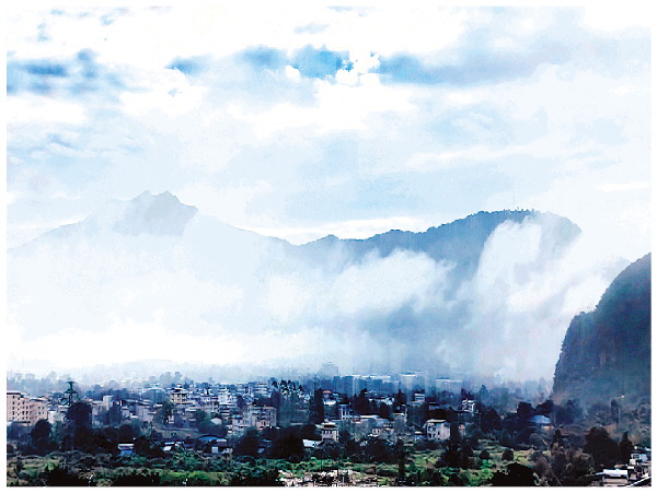 昨日清晨,市区东郊的尧山云雾缭绕,宛若仙境一般。 记者邢刚 摄