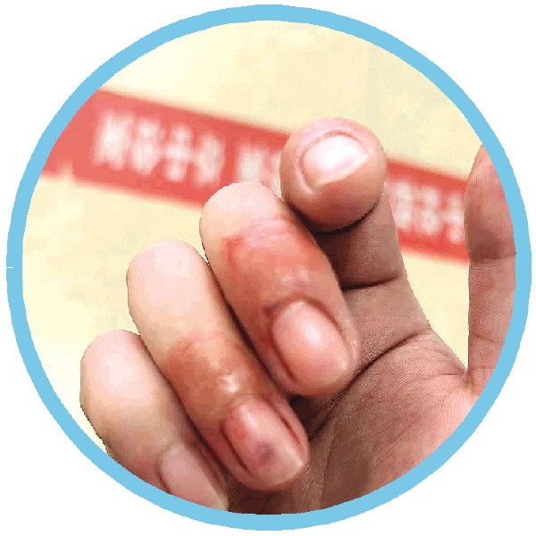 “我来抱着孩子。”在医护人员的帮助下,廖翔抱着孩子就往急诊室赶。这时,孩子还一直咬着他的手。看孩子没有稳定下来,廖翔一直没吭声。直到孩子被安置在病床上,医护人员才帮助廖翔把手指“解救”出来。此时廖翔的中指和无名指已经被咬破,渗着血肿了一圈。