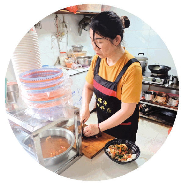 每天的中午饭点,就是徐家秀最忙碌的时候,但她却格外洒脱,每天粉卖完了就立马收拾打烊,用她自己的话说就是“累了就休息,卖完就下班”。每天下午三点左右,她就会收拾好铺子回家,有时会去跟姐妹们打打牌,有时则带放暑假的女儿出去玩耍。