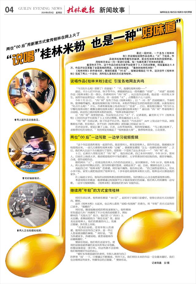 这次《桂林米粉》火起来,也让两人看到“说唱+短视频”的潜力,用“年轻”的方式宣传自己家乡,“挺酷的”。