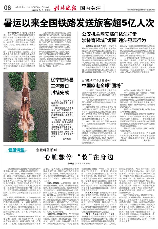 新华社北京8月7日电(记者樊曦)记者7日从中国国家铁路集团有限公司获悉,自暑运启动以来,7月1日至8月6日,全国铁路累计发送旅客5.13亿人次,同比增长5.4%,突破5亿人次大关,日均发送旅客1386万人次。