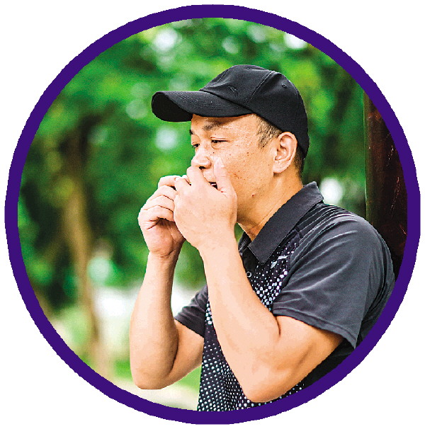 苦瓜乐队成员吴生斌,经常一个人在户外吹口琴。
