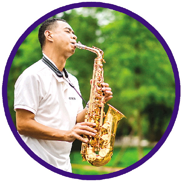 苦瓜乐队成员岳少科,每逢周末的早上,都会在江心洲上吹萨克斯。