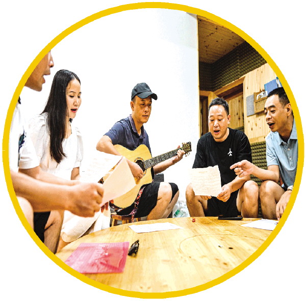 ←两支“瓜果”乐队成员经常在工作室里一边唱歌一边讨论音乐。