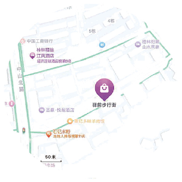 导航至驿前步行街,往里走就可以找得到。(导航软件截图)