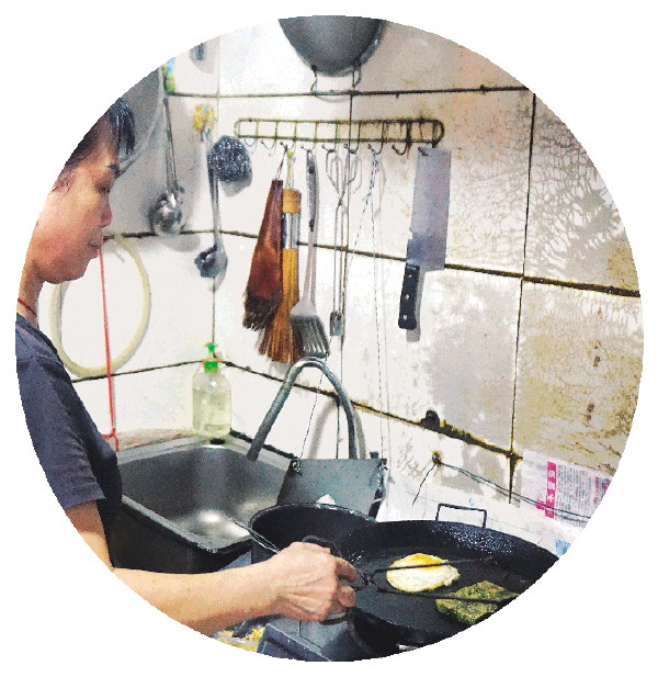 黄进群正在后厨煎粑粑。
