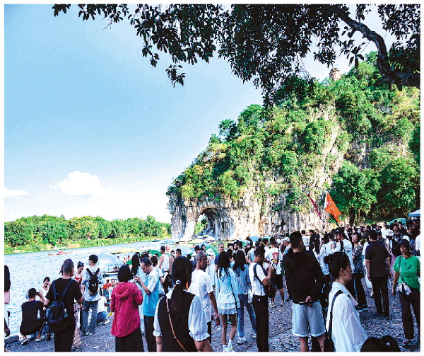 近日,在象山景区里,游客们正在参观游览。虽然暑假已接近尾声,但桂林的旅游市场依旧火爆。记者滕嘉 摄