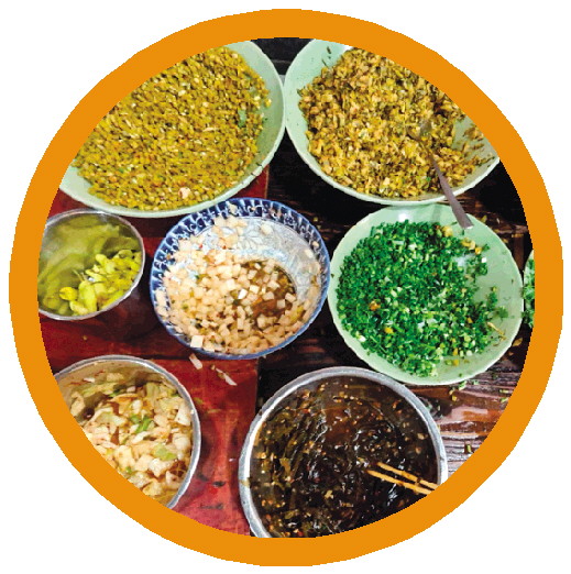 ↓桂林米粉因为配菜多而被网友称为“5块钱的自助餐”。